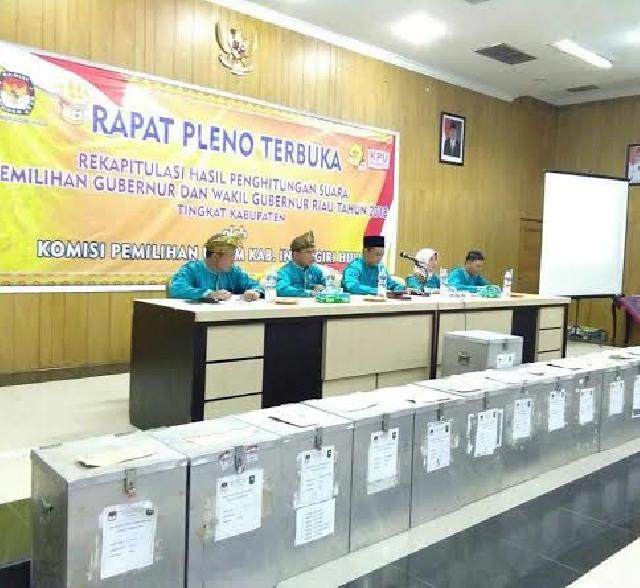 Total pemilih di Inhu hanya lebih kurang 51,39 persen dengan total pemilih 139.703 suara dengan suara tidak sah 3865 suara dan suara sah 135.838. Hasil tersebut didapat rapat pleno kabupaten yang digelar KPU Inhu, Rabu (4/7/2018) di gedung Sejuta Sungkai Rengat. Pleno tersebut berdasarkan hasil pleno dari PPK se-Indragiri Hulu.