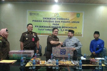 Kajari Bengkalis, Heru Winoto menjelaskan pengembalian uang ke negara merupakan kado sempena Hari Bhakti Adhiyaksa (HBA) ke 58 dari Kejari Bengkalis. Uang segar itu berasal eksekusi dari dua perkara.