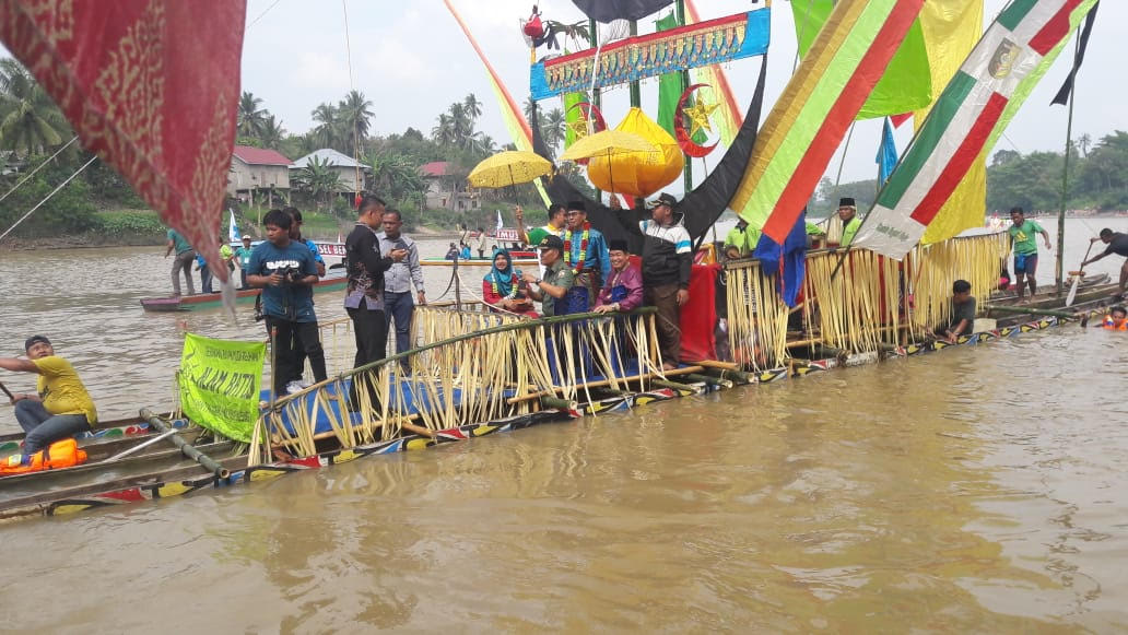 Bupati Mursini beserta rombongan disambut dengan gemuruh kompang dan dibawa ke hulu pancang start Tepian Teluk Bayur, tempat acara berlangsung.