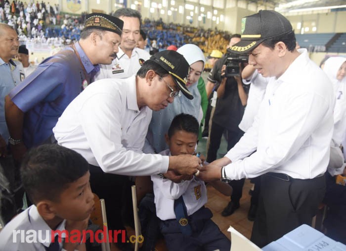RIAUMANDIRI.CO, TEMBILAHAN - Bupati Kabupaten Inhil, HM Wardan menghadiri pencanangan Measles Rubella (MR) yang digelar Pemerintah Kabupaten Inhil melalui Dinas Kesehatan, Rabu (1/7/2018) pagi, di Venue Futsal, Tembilahan.