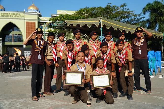 RIAUMANDIRI.CO, PONOROGO - Kontingen Pramuka Pondok Modern Darussalam Gontor Kampus 11 Sulit Air, Solok, Sumatera Barat, meraih prestasi lomba pramuka nasional Gontor Pusat, Ponorogo.