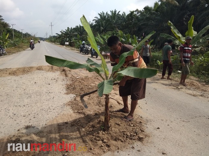 Sugeng berucap, tanaman batang pisang itu sebagai bentuk protes, agar pemerintah Provinsi Riau bisa merawat aset jalan yang ada agar tidak menjadi musibah bagi pegendara.