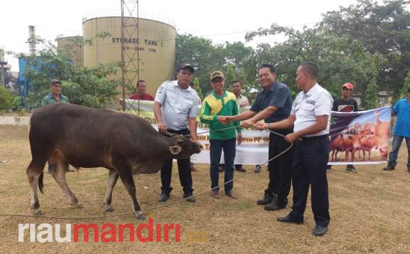 RIAUMANDIRI.CO, ROKANHILIR - Dalam rangka menyambut Hari Raya Idul Adha 1439 H, PT Sawit Riau Makmur (SRM) menyerahkan dua ekor sapi kurban kepada warga Kepenghuluan Teluk Mega, Kecamatan Tanah Putih dan satu ekor kepada karyawannya.