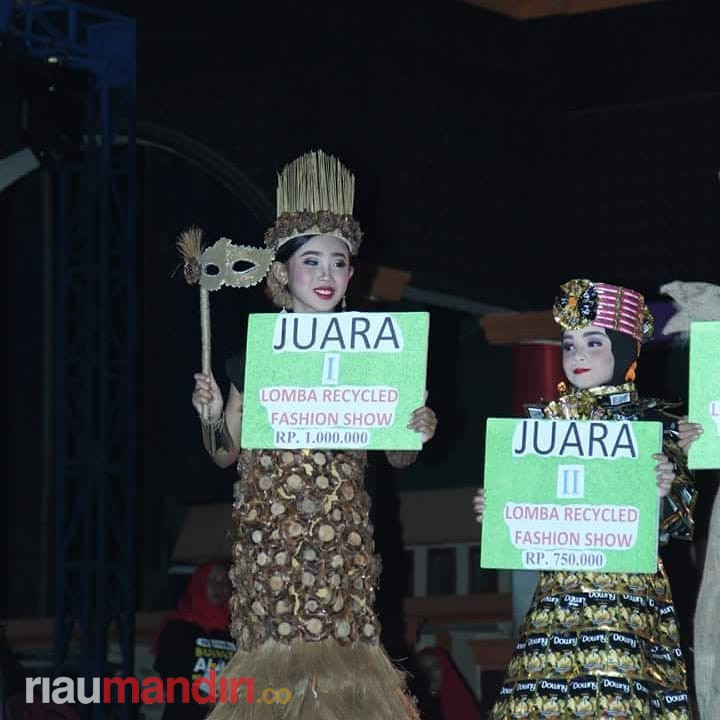 RIAUMANDIRI.CO, TEMBILAHAN - Calya Syakirah, putri dari pasangan Herwanissitas dan Kasmawati ini, kembali menorehkan prestasi dengan berhasil meraih juara I terbaik dalam acara Recycled Fashion Show Srigemilang pada Festival Budaya Alam Nusantara 2018 di Tembilahan, Sabtu (25/8/2018).