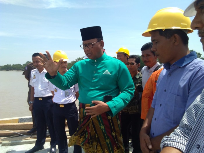 RIAUMANDIRI.CO, BAGANSIAPIAPI - Bupati Rokanhilir H Suyatno meninjau langsung pembangunan lanjutan pelabuhan Bagansiapiapi, Kecamatan Bangko, Kabupaten Rokan Hilir, Senin (27/8/2018).