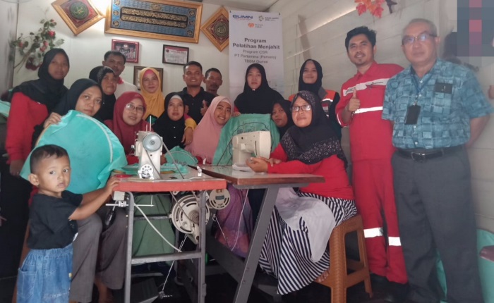 RIAUMANDIRI.CO, DUMAI - Tim Pertamina TBBM Dumai meninjau aktivitas pelatihan jahit dan bordir di Kelurahan Bukit Batrem, Kecamatan Dumai Timur, Kota Dumai, Riau, Kamis (31/8/2018). Peserta yang kebanyakan kaum ibu tampak antusias dan bersemangat. Mereka berkumpul melaksanakan pelatihan yang di dapat dari Rumah Zakat.