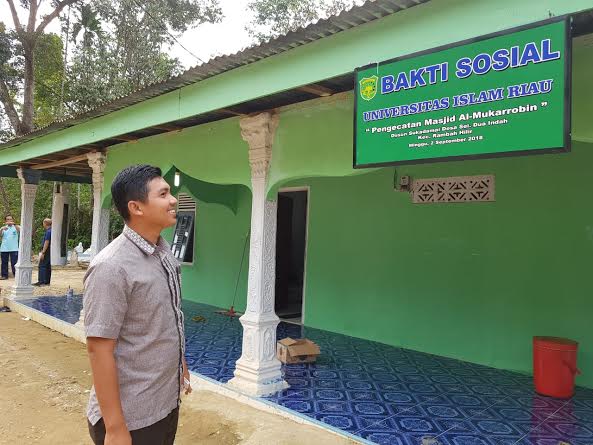 Perjalanan Rektor dan rombongan selanjutnya yakni meninjau pelaksanaan bakti sosial mahasiswa himpunan perdata di Dusun Sukadamai, Desa Sei Dua Indah, Kecamatan Rambah Hilir. Selain melakukan pengecetan dinding Masjid Al Muqorrabin, Himadata juga membersihkan ruangan sholat dan tempat berwudhuk.