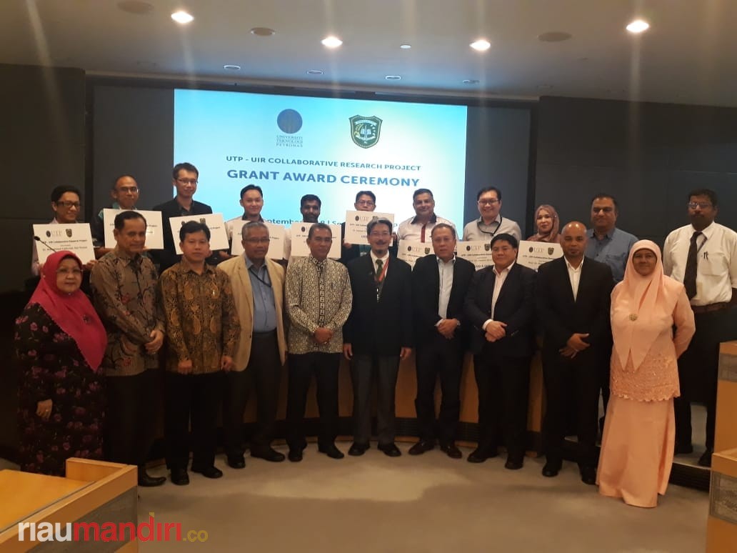 RIAUMANDIRI.CO, PEKANBARU - Menindaklanjuti Memorandum of Understanding (MoU) antara Universitas Islam Riau (UIR) dengan Universiti Teknokogi Petronas (UTP) Malaysia, Wakil Rektor III UIR Ir Rosyadi dan Ketua LPPM Dr Evizal Abdul Kadir, ST, MEng menyerahkan dana penelitian bersama kepada pihak UTP senilai 120 ribu dolar AS.
