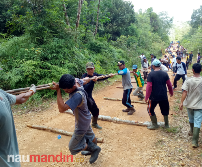 RIAUMANDIRI.CO, TELUK KUANTAN - Pemerintah desa bersama masyarakat Koto Rajo, Kecamatan Kuantan Hilir Seberang (KHS), Kabupaten Kuansing melaksanakan gotong royong ma elo kayu jalur (menarik atau mengeluarkan kayu jalur), Ahad (23/9/2018).