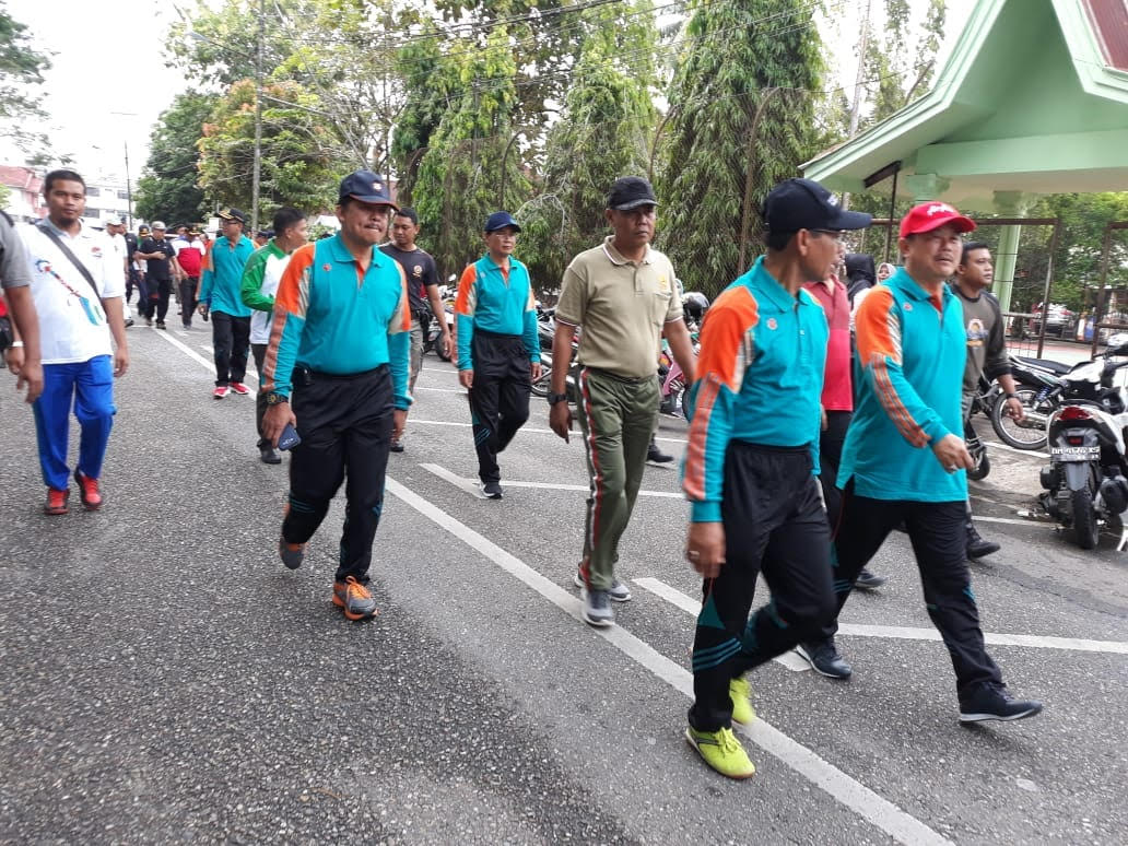 RIAUMANDIRI.CO, TELUK KUANTAN - Memeriahkan hari ulang tahun ke-19 Kabupaten Kuantan Singingi, panitia HUT Kuansing menggelar kegiatan gerak jalan santai. Gerak jalan santai dibuka oleh Bupati Kuansing Mursini, Kamis (11/10/2018).