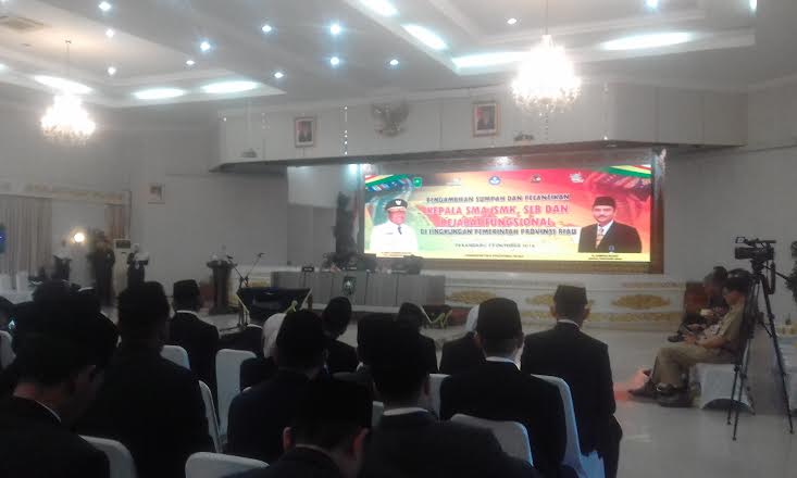Acara ini diawali dengan pembacaan Surat Keputusan Gubernur Riau tentang Pengangkatan Kepala SMA, SMK dan SLB, pembacaan sumpah jabatan oleh perwakilan kepala sekolah dan pejabat fungsional sekaligus penandatanganan oleh Plt Gubernur Riau.