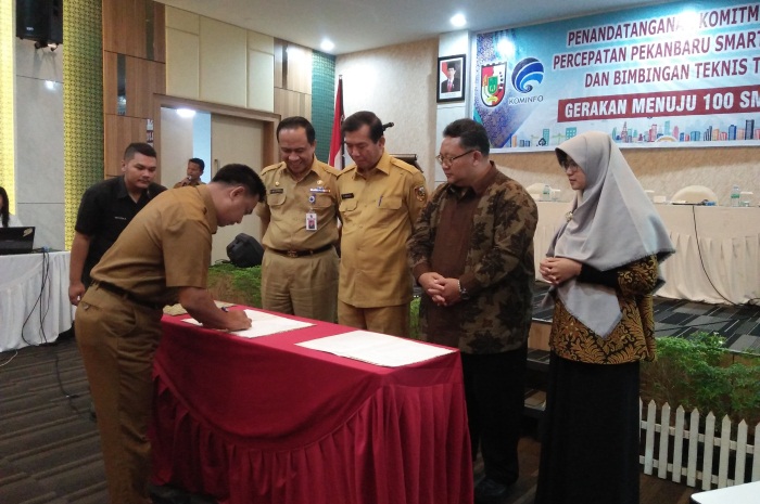 Acara terakhir ditutup dengan penandatanganan komitmen dalam rangka percepatan Pekanbaru Smart City Madani oleh kepala OPD.(mg2)