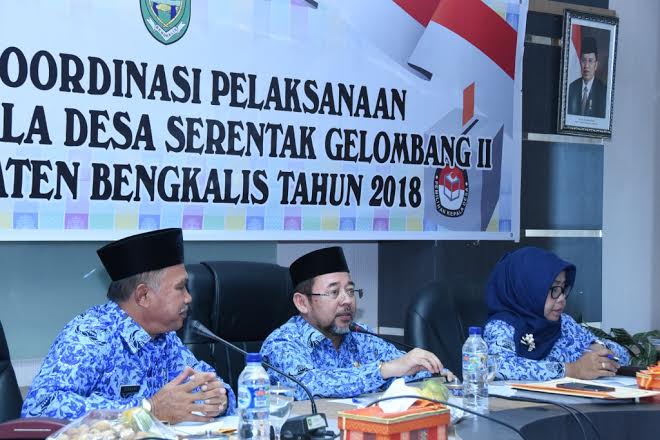 Rapat koordinasi dipimpin Sekretaris Daerah Kabupaten Bengkalis, H Bustami HY dan dihadiri Camat se-Kabupaten Bengkalis dan Forkompinda. Yuhelmi menyampaikan, pihaknya sudah melaksanakan berbagai tahapan, diantaranya, sosialisasi pembentukan panitian pilkades, pengumuman, pembukaan pendaftaran dan pembentukan KPPS, pembekalan, tes dan pemberian rekomendasi dari LAMR, pendaftaran bakal calon.
