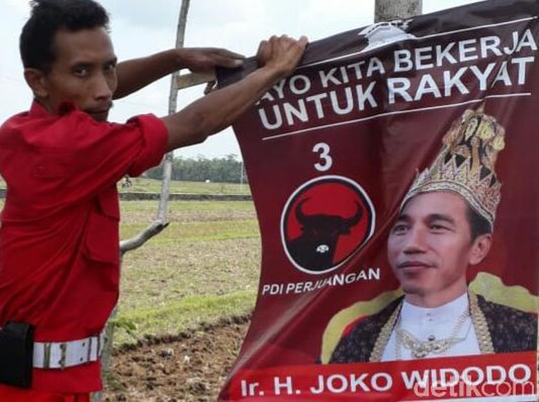 Poster hingga stiker 'Raja Jokowi' sebelumnya beredar di sejumlah wilayah di Jawa Tengah. DPD PDIP Jateng menginstruksikan jajarannya mencopot atribut tersebut.
