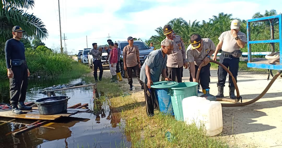 Polres Rohil Bagikan Air Bersih kepada Warga Korban Banjir di Desa Impah