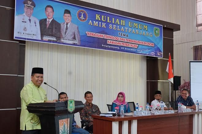 Pada kuliah umum dengan tema "Kemajuan Teknologi dan Pembangunan Ekonomi Kawasan Perbatasan" itu juga menghadirkan pembicara lain yaitu mantan Gubernur Riau Wan Abu Bakar, Ketua KPID Riau Meranti Falzan Surahman, dan Direktur AMIK Selatpanjang Zulfikri, M. Kom.