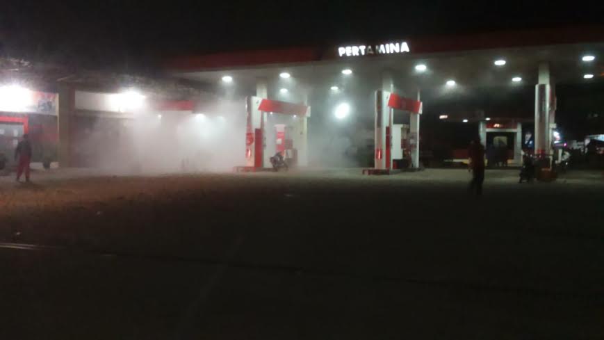 Bripka Misran mengatakan, karena pompa tersebut menggunakan arus listrik, Yogi Pernanda mencolokkan cok pompa ke stop kontak yang berada di tiang listrik. Ketika cok pompa dicolokkan ke stop kontak, menimbulkan percikan api dan langsung menyambar ke arah rumput yang ada tumpahan minyak bensin. Api dengan cepat menjalar ke arah manhole SPBU.