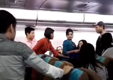 Petugas cabin crew berusaha untuk meredakan suasana. Pelaku sempat melakukan perlawanan sehingga mengharuskan Pilot in Command melakukan tindakan tegas. Dengan alasan keamanan dan kenyamanan penumpang lain, maka Pilot in Command memuntuskan untuk menurunkan pelaku dari pesawat.