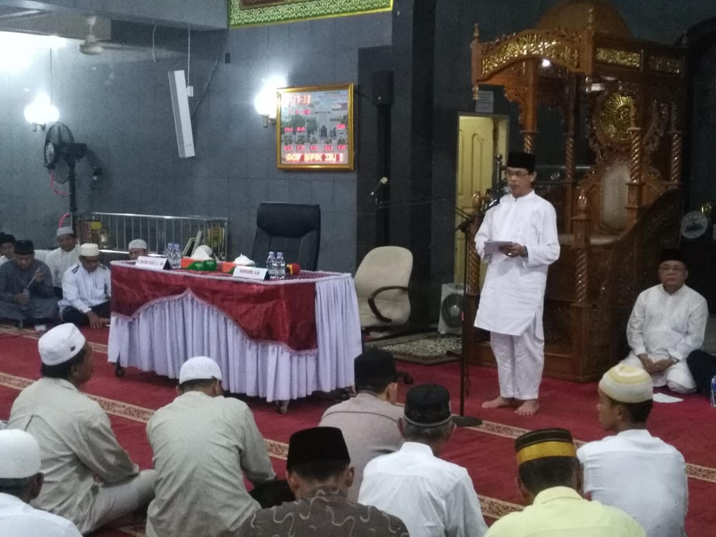 RIAUMANDIRI.CO, TELUK KUANTAN - Menyambut Tahun Baru 2019, Pemerintah Kabupaten Kuantan Singingi menggelar ceramah agama di Masjid Raya bersama ASN dan masyarakat, Senin (31/12/2018) malam.