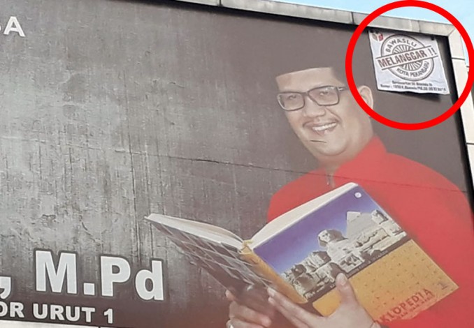 Tak Taat Aturan, Bawaslu Pekanbaru Pasang Stiker 'Melanggar' di Baliho Caleg