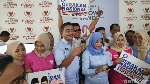 RIAUMANDIRI.CO, JAKARTA – Badan Pemenangan Nasional (BPN) Prabowo Subianto-Sandiaga Uno menggelar nonton bareng (nobar) debat Pemilihan Presiden 2014. Di acara itu relawan emak-emak ikut menyaksikan tayangan ulang debat tersebut.