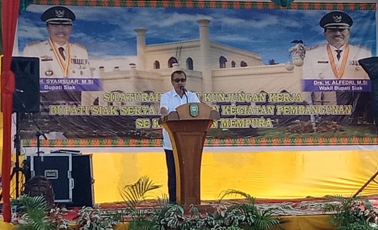 RIAUMANDIRI.CO, SIAK - Bupati Siak H. Syamsuar menghadiri peresmian kegiatan pembangunan tahun anggaran 2019 di Kecamatan Mempura, Kabupaten Siak. Pada kesempatan itu, Syamsuar mengapresiasi pembangunan yang telah dilakukan.