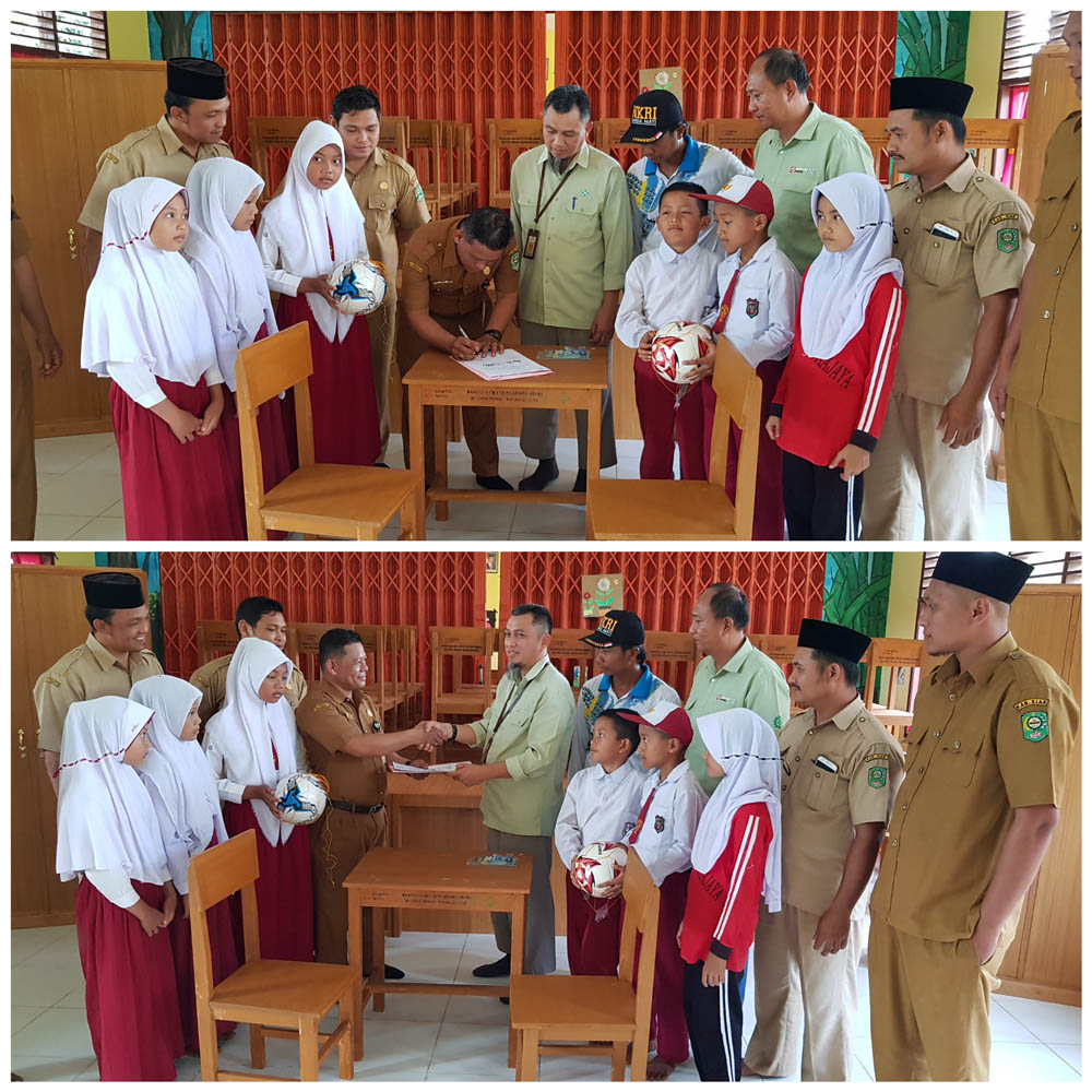 RIAUMANDIRI.CO, TUALANG - Distrik Rasau Kuning PT Arara Abadi-Sinar Mas Forestry (PT AA-SMF) Wilayah Riau, Selasa (29/1/2019), menyerahkan bantuan perlengkapan meubeler sekolah, yakni, meja, kursi belajar serta lemari dan alat olahraga kepada SD Negeri 16 Dusun Suka Jaya, Desa Pinang Sebatang Barat, Kecamatan Tualang, Kabupaten Siak.