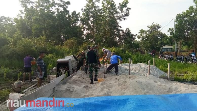 RIAUMANDIRI.CO, SELATPANJANG - Dalam rangka Karya Bhakti, Koramil 02/Tebing Tinggi bersama masyarakat Dusun II, Desa Banglas, Kecamatan Tebingtinggi Kabupaten Kepulauan Meranti menggelar gotong-royong (goro) bersama, Selasa (5/2/2019).