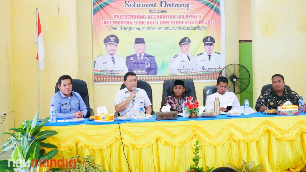 Demikian disampaikan Bupati Kampar melalui Kepala Badan Perencanaan Pembangunan Daerah (Bappeda) Kabupaten Kampar Afrizal, SSos saat membuka pelaksanaan Musrenbang Kecamatan Wilayah II Kecamatan Siak Hulu dan Perhentian Raja di aula kantor Camat Perhentian Raja di desa Pantai Raja, Jumat (22/2/2019).