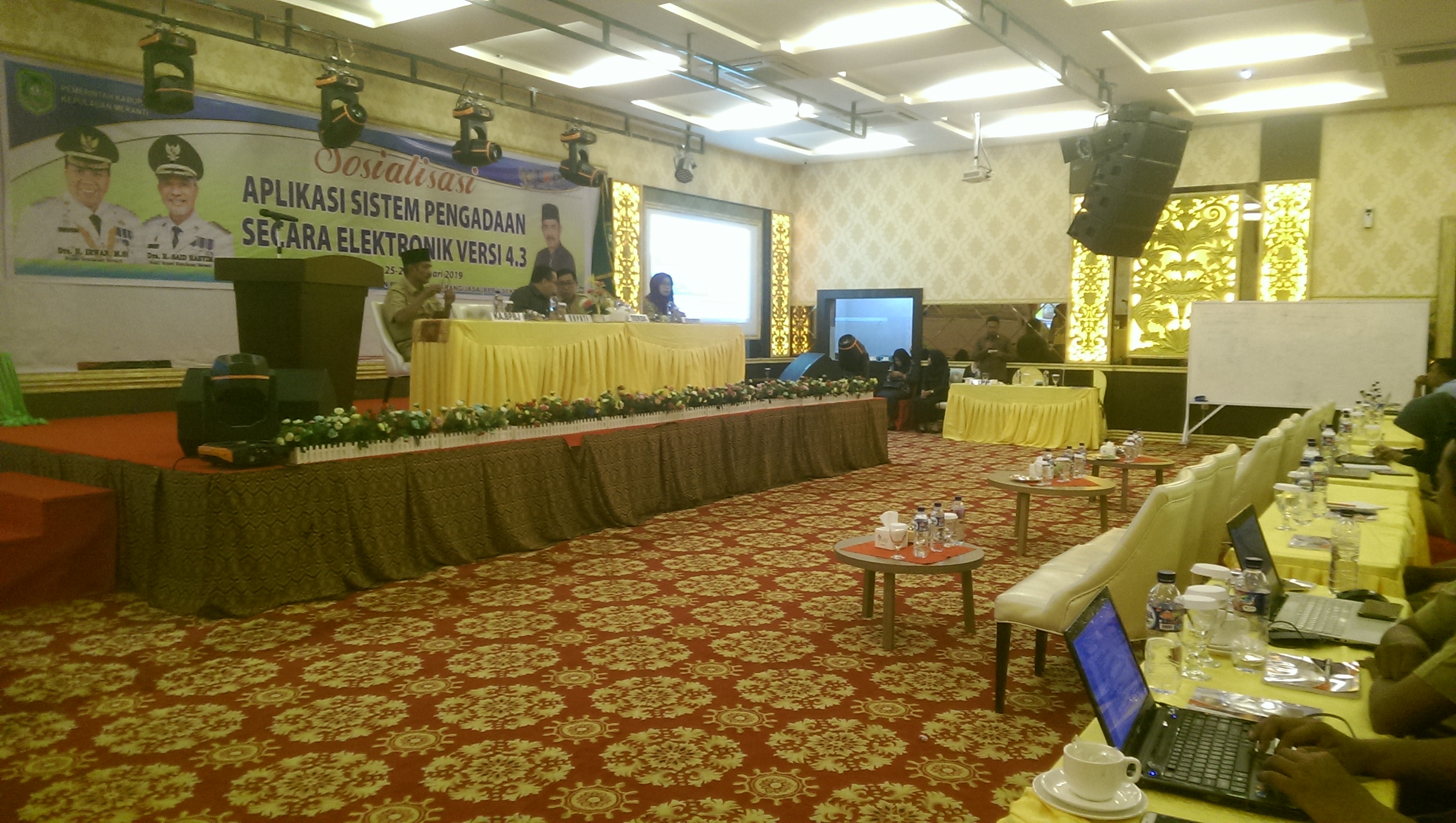 RIAUMANDIRI.CO, MERANTI - Bupati Kepulauan Meranti Drs H Irwan Nasir, MSi membuka secara resmi Sosialisasi Aplikasi Sistem Pengadaan Secara Elektronik Versi 4.3, bertempat di Ballroom Grand Meranti Hotel, Senin (25/2/2019).