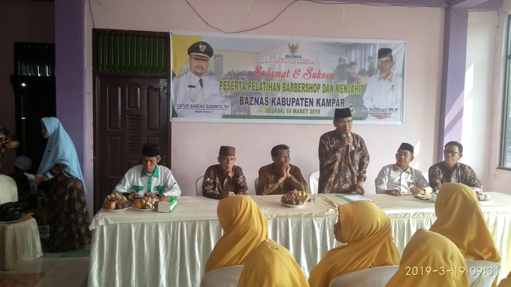 RIAUMANDIRI.CO, BANGKINANG KOTA - Badan Amil Zakat Nasional (Baznas) Kabupaten Kampar menggelar acara penutupan pelatihan menjahit dan Barbershop yang bertempat di Bazmart lantai II Jl. Sudirman Bangkinang Kota, Selasa (19/3/2019).