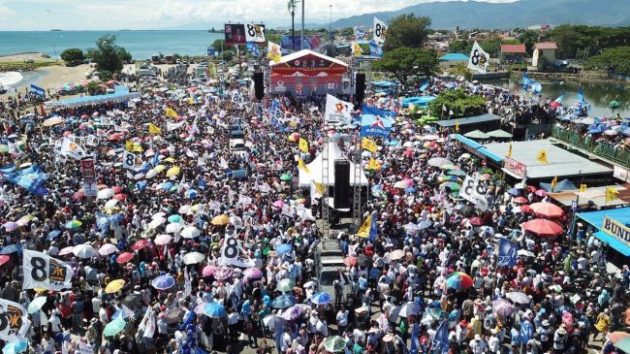 "Coblos nomor 02 untuk masa depan semua. Kita bersama-sama Indonesia menang, kita menyongsong Indonesia yang bersih dari korupsi, kita menyongsong Indonesia yang adil dan makmur," ujar Prabowo.