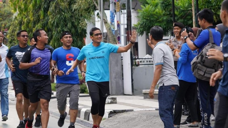 Bukan sekadar berlari, Sandiaga juga sesekali menyapa warga. Lambaian tangan dan senyuman mewarnai perjalanannya menuju Pantai Kemala.