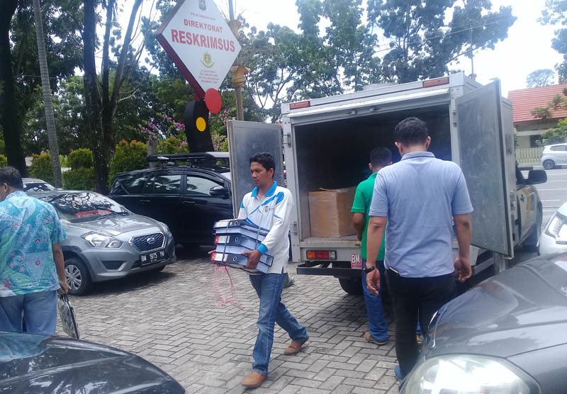 Saat itu, terlihat satu unit mobil milik UPTD Instalasi Farmasi Diskes Kampar di halaman kantor Dit Reskrimsus Polda Riau, Jalan Gajah Mada Pekanbaru. Mobil box warna putih dan hitam berplat merah dengan nomor polisi BM 8546 F itu membawa dokumen terkait JKN dari sejumlah Pusat Kesehatan Masyarakat (Puskemas) yang ada di Kabupaten Kampar. Adapun dokumen JKN itu diketahui merupakan data tahun 2016.