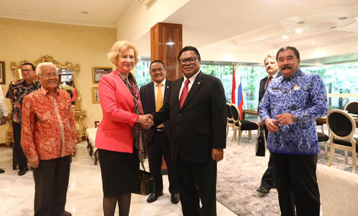 RIAUMANDIRI.CO, JAKARTA - Ketua DPD RI Oesman Sapta mengadakan pertemuan dengan Duta Besar Rusia, Lyudmila Georgievna Vorobiev, di Rumah Dinas Ketua DPD RI, Kuningan, Jakarta, Rabu (24/4/2019). Pertemuan tersebut membahas peningkatan investasi Rusia di Indonesia.