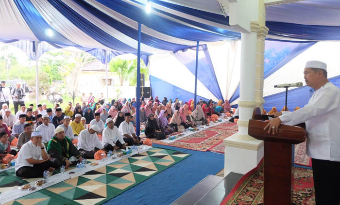 Kegiatan buka puasa bersama ini ditutup dengan tausiyah oleh Ustadz Nasyani, Pimpinan Pondok Pesantren Nur Darissalam, Kecamatan Kempas. (ADV /DISKOMINFOPS INHIL)