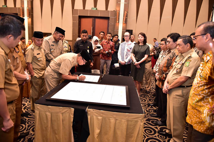 RIAUMANDIRI.CO, TELUK KUANTAN - Kabupaten Kuantan Singingi (Kuansing) bersama 11 kabupaten/kota se-Provinsi Riau menandatangani komitmen bersama optimalisasi pengelolaan pelayanan pengaduan di Provinsi Riau, Selasa (21/5/2019) di Pekanbaru.