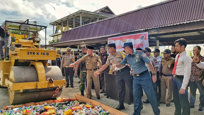 Adapun barang makanan dan minuman yang menjadi objek pemusnahan berupa, minuman keras ilegal, biskuit dna minuman kadaluarsa, makanan tak berizin dan lainnya dengan jumlah seribuan.