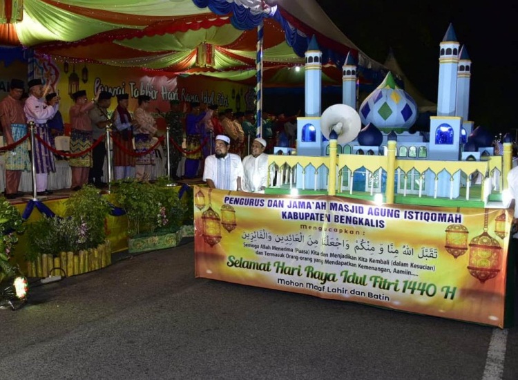 Sementara itu, Bustami dalam sambutan tertulis Bupati Bengkalis yang dibacakannya, mengatakan bahwa pelaksanaan pawai takbiran Idul Fitri 1440 Hijriyah merupakan salah satu upaya kita bersama dalam mensyi’arkan nilai-nilai islam di Negeri Junjungan ini. Melalui pelaksanaan pawai takbir ini juga hendaknya, akan mampu menumbuhkan nilai-nilai keimanan, ukhuwah islamiyah dan mensyiarkan agama islam yang rahmatan lil’alamin serta mempererat silaturrahmi yang diimplementasikan dengan menjaga keamanan, ketertiban dan kenyamanan, seraya mengumandang dan menggemakan takbir, tahlil dan tahmid.
