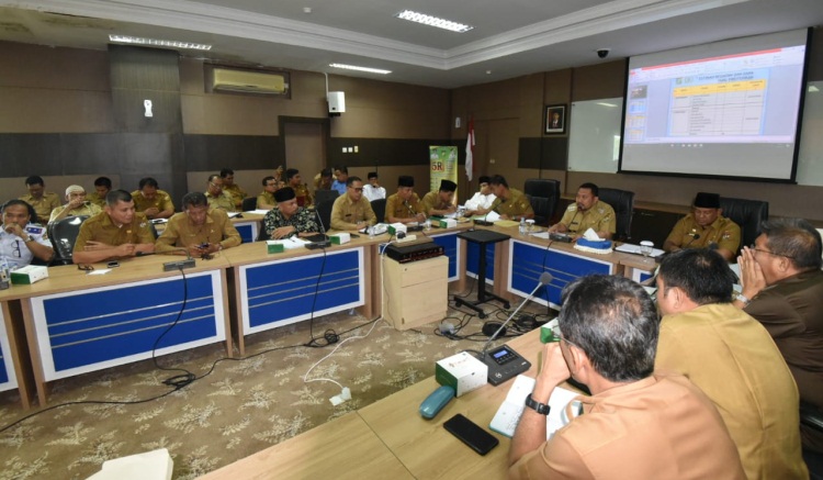 RIAUMANDIRI.CO, BANGKINANG - Bupati Kampar Catur Sugeng Susanto memimpin rapat agenda daerah yang akan dilaksanakan dalam beberapa waktu yang akan datang, di antaranya Pelaksanaan Musabaqoh Tilawatil Qur'an (MTQ) Tingkat Kabupaten dan Provinsi Riau, Anggaran Perubahan Tahun 2019, Rapat Keberangkatan Jama'ah Haji Kabupaten Kampar 1440H/2019 M, dan Persiapan HUT RI tahun 2019.