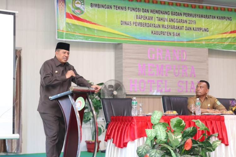RIAUMANDIRI.CO, SIAK - Bupati H Alfedri membuka kegiatan Bimtek fungsi dan wewenang Badan Permusyawaratan Kampung (Bapekam) se Kabupaten Siak di Hotel Grand Mempura, Selasa (2/7/2019).