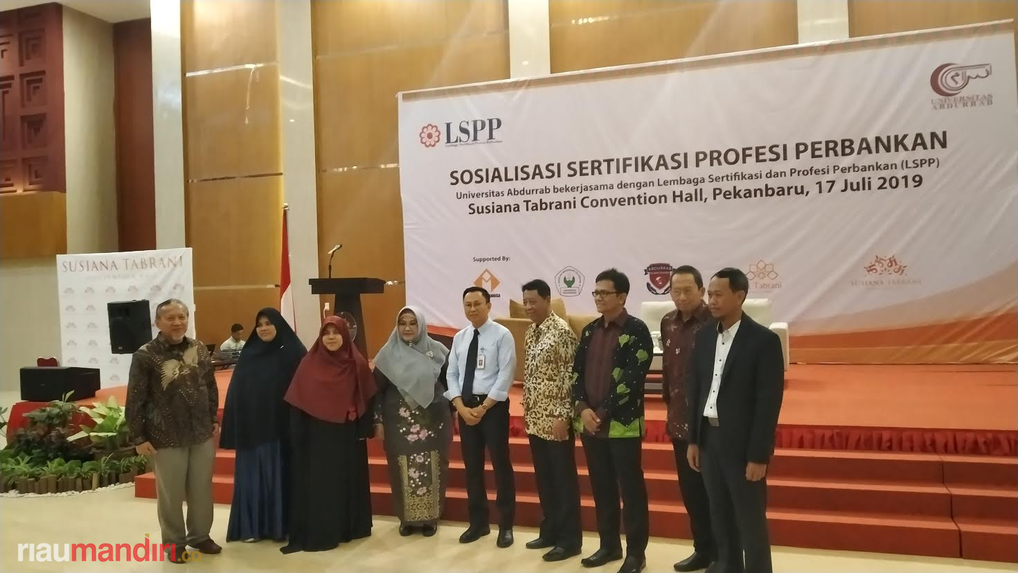 Sebagai langkah awal, LSPP bekerja sama dengan Universitas Abudrrab Pekanbaru menggelar sosialisasi sertifikasi profesi perbankan di Susiana Tabrani Convention Hall, Universitas Abdurrab Pekanbaru.