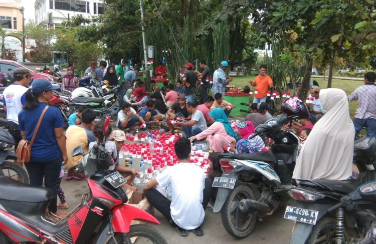 RIAUMANDIRI.CO, TELUK KUANTAN - Menyambut HUT Kemerdekaan RI ke-74 dan event Pacu Jalur di Kuantan Singingi, Ikatan Pedagang Taman Jalur (IPTJ) Teluk Kuantan, menunjukkan semangat kemerdekaan dengan menghiasi Taman Jalur dengan nuansa merah putih.
