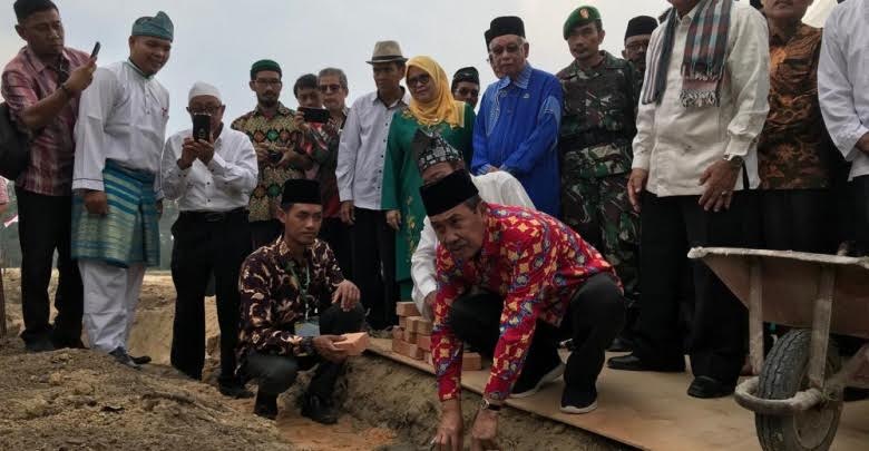 RIAUMANDIRI.CO, PEKANBARU - Gubernur Riau Syamsuar meletakkan batu pertama pembangunan Universitas Yatim Asean di Jalan Garuda Sakti km 12, Desa Karya Indah Kecamatan Tapung, Kampar, Sabtu (24/8/2019). Lahan universitas seluas 100 hektar tersebut merupakan tanah wakaf dari H Hasyim Jamadi.