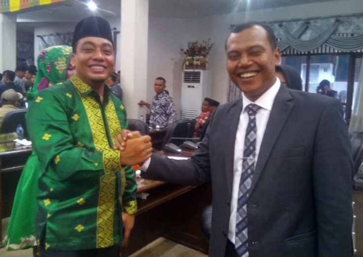 RIAUMANDIRI.CO, Rokanhulu – Dua orang tokoh asal Rokan Hulu, Erizal ST dan Kelmi Amri SH mulai mengumbar kedekatan di hadapan khalayak dengan melakukan salam komando, usai menghadiri acara pelantikan anggota DPRD Rokan Hulu, di Gedung DPRD Rohul, Senin (2/9/2019).