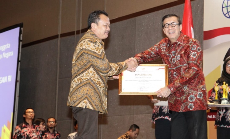 Pemberian penghargaan tersebut diberikan secara langsung oleh Menteri Hukum dan HAM, Yasonna H Laoly, dalam JDIHN Award 2019 bertema ‘Penguatan JDIH Nasional Dalam Rangka Percepatan Reformasi Hukum, di Jakarta, Selasa (10/9/2019).