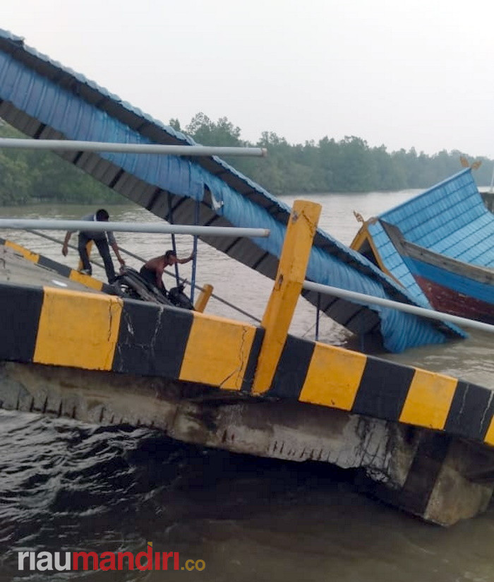 Informasi yang dihimpun Riaumandiri.co di lapangan, pelabuhan Roro ini runtuh setelah loading kendaraan bermotor dari Batam selesai. Tidak ada kendaraan yang ikut tenggelam, namun seorang petugas yang posisinya pas di tempat kejadian ikut jatuh bersama runtuhnya pelabuhan.