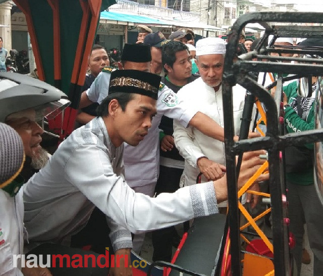 UAS disambut langsung oleh Wakil Bupati Meranti Said Hasyim, Ketua DPRD Fauzi Hasan, Ketua MUI H.Mustafa, Ketua Fitra Madani, Ustad Fauzi, Ketua FPI Meranti Hendrizal dan masyarakat yang memadati.