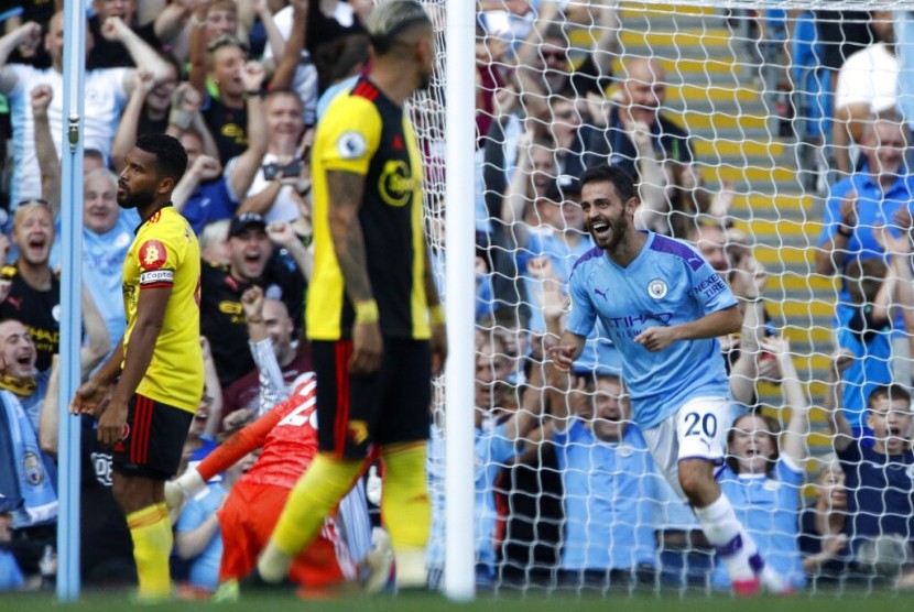 RIAUMANDIRI.CO, MANCHESTER - Manchester City berpesta gol saat menjamu Watford pada laga pekan keenam Liga Primer Inggris, Sabtu (21/9). City menggulung Watford 8-0 di Stadion Etihad, Manchester untuk naik menggusur Leicester City dari posisi kedua klasemen sementara.