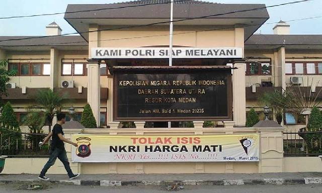 Medan (HR) - Medan, Kepolisian Resor Kota Medan memasang spanduk untuk menolak Negara Islam Irak dan Suriah. Imbauan dalam spanduk itu diharapkan dapat mencegah warga dari pemahaman ISIS yang dinilai keliru.